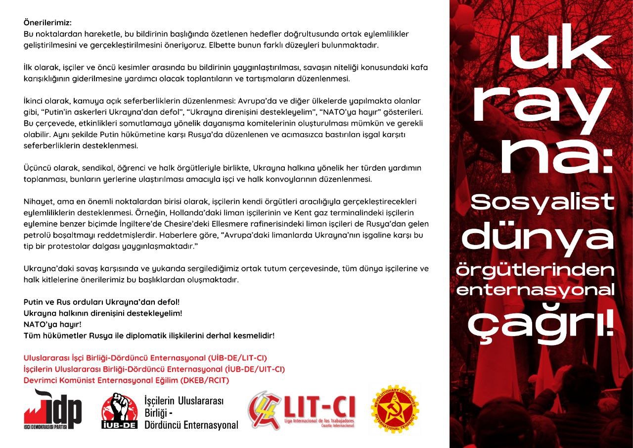 Ukrayna’daki savaş karşısında ve yukarıda sergilediğimiz ortak tutum çerçevesinde, tüm dünya işçilerine ve halk kitlelerine önerilerimiz bu başlıklardan oluşmaktadır.